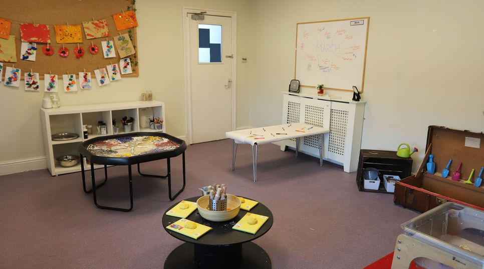 Our preschool space is set across 3 rooms. We have our messy play room where the children enjoy a range of activities: sand, water, playdough and as well as a variety of messy activities. This room also has a tuff tray which is changed weekly to link in with children's interests or to help develop different skills. The second room is a sensory room where the children can enjoy a range of toys to stimulate the senses or which can be used as a quiet environment for the children to enjoy sensory breaks. The final room houses our home corner, role play area, construction area, cosy book corner and a small world area.